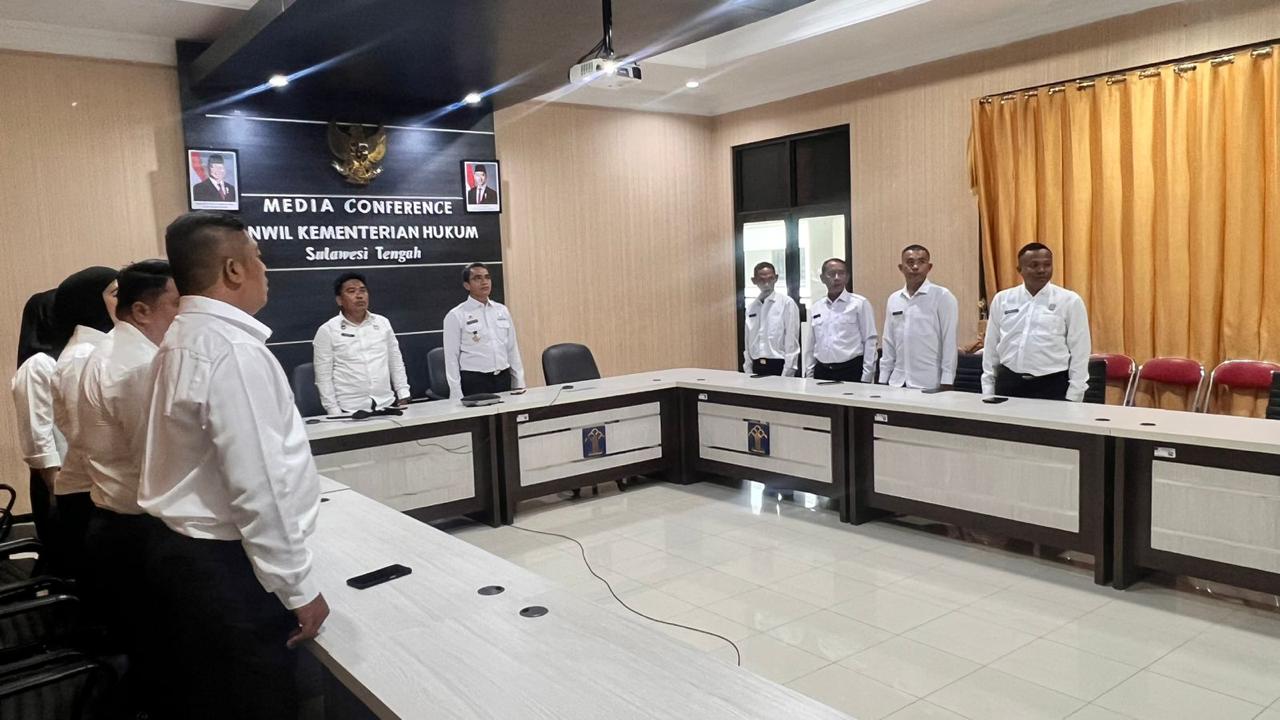 Dari Kanwil Kemenkum Sulteng, kegiatan ini diikuti oleh Kepala Bagian Tata Usaha dan Umum, Muhammad Wahab Marawali, bersama Abraham Hariyanto, serta para PPPK Kanwil yang baru diserahterimakan.