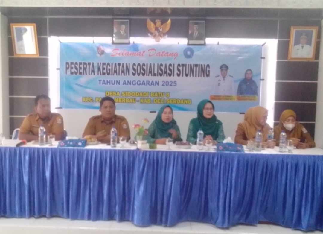 Deli Serdang- TransTV45.com|| Untuk memberikan edukasi dan peningkatan kesadaran pencegahan Stunting, Pemerintah Desa Sidodadi Batu 8 Kecamatan Pagar Merbau laksanakan kegiatan sosialisasi Stunting,Selasa (07-10-2025).Kegiatan ini merupakan bagian dari program pemberdayaan masyarakat tahun anggaran 2025.