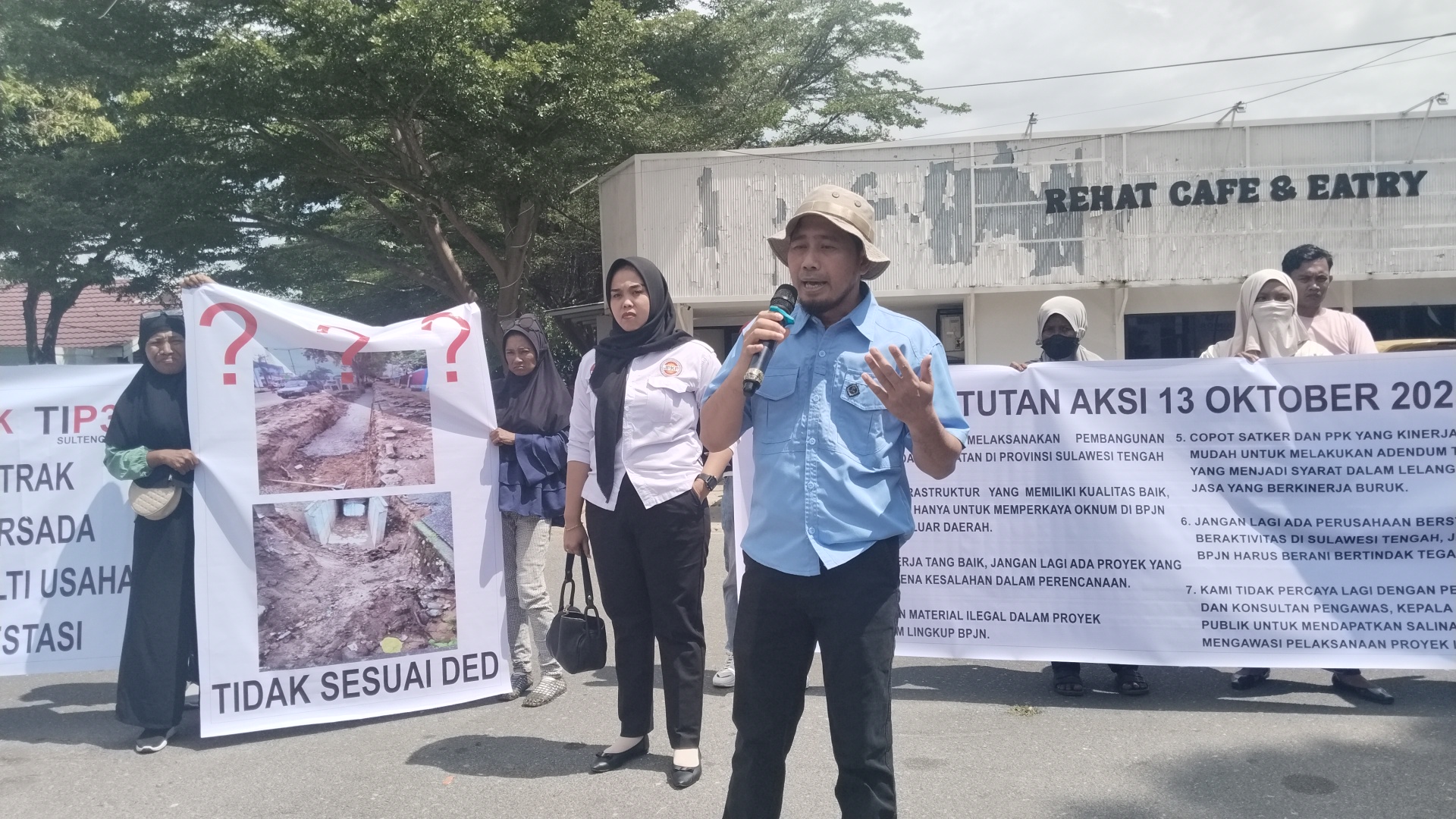 Palu-TransTV45.Com//Marwan, Ketua Anti Korupsi (Kak) Sulawesi Tengah (Sulteng), menggelar aksi protes tajam di kantor Balai Pelaksanaan Jalan Nasional (BPJN XIV) Palu. Dalam aksinya , Marwan membongkar sejumlah praktik pekerjaan proyek yang dinilai cacat dan penuh kecurangan, mulai dari tender hingga pelaksanaan di lapangan.