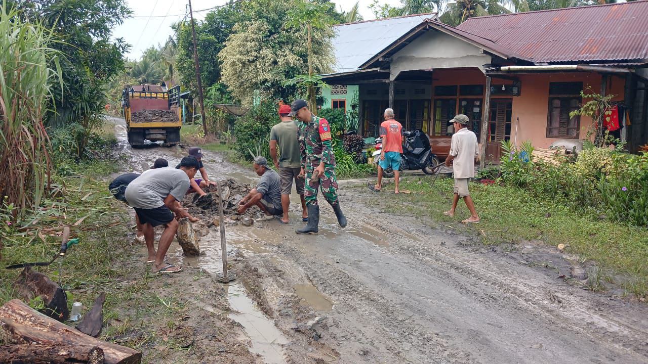 Babinsa Koramil 04/Jawai Laksanakan Kerja Bakti Timbun Jalan Berlubang