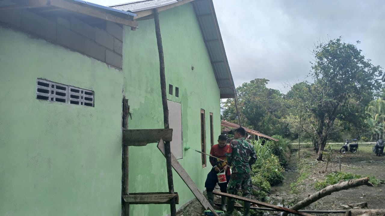 Kegiatan pengecatan dilakukan oleh personel Satgas TMMD bersama warga sekitar secara bergotong-royong. Selain memperindah tampilan rumah, pengecatan juga berfungsi melindungi dinding dari cuaca dan menambah ketahanan bangunan.