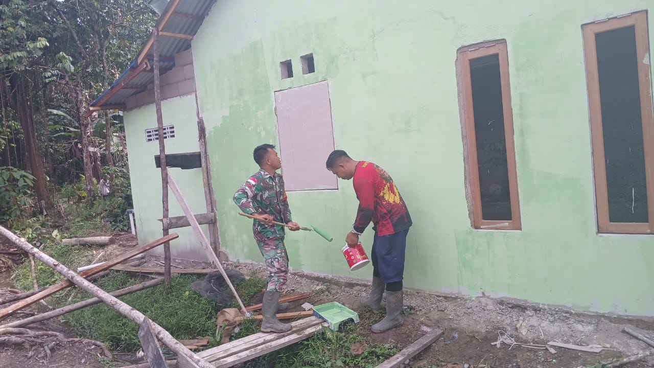 Sambas,TransTV45.com. : Satgas TNI Manunggal Membangun Desa (TMMD) ke-126 Kodim 1208/Sambas terus menunjukkan dedikasinya dalam mempercepat pembangunan di wilayah Desa Ratu Sepudak, Kecamatan Galing. Salah satu sasaran fisik yang kini dikerjakan adalah pengecatan Rumah Tidak Layak Huni (RTLH) milik warga penerima manfaat program TMMD. (Kamis,23 Oktober 2025).