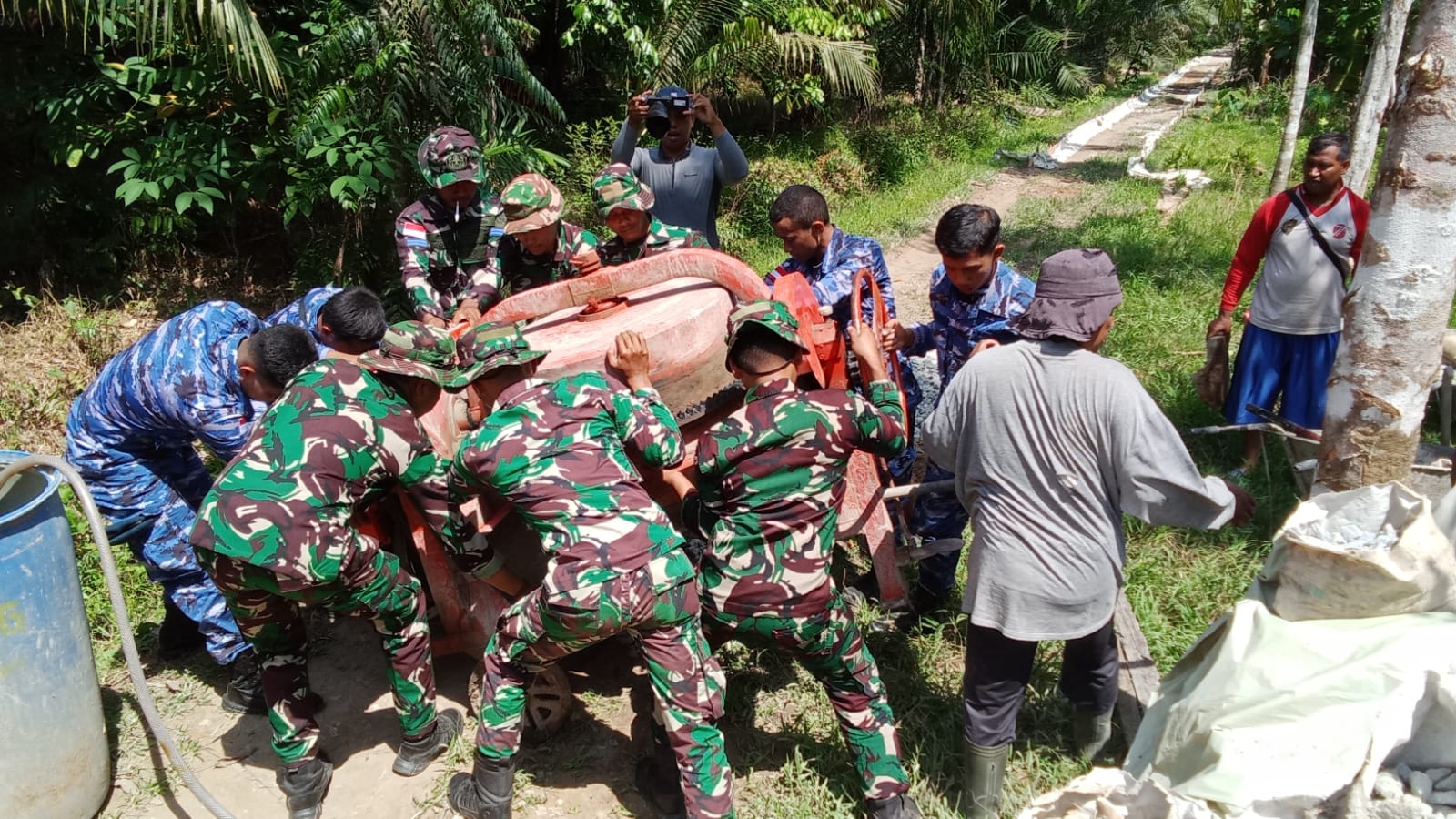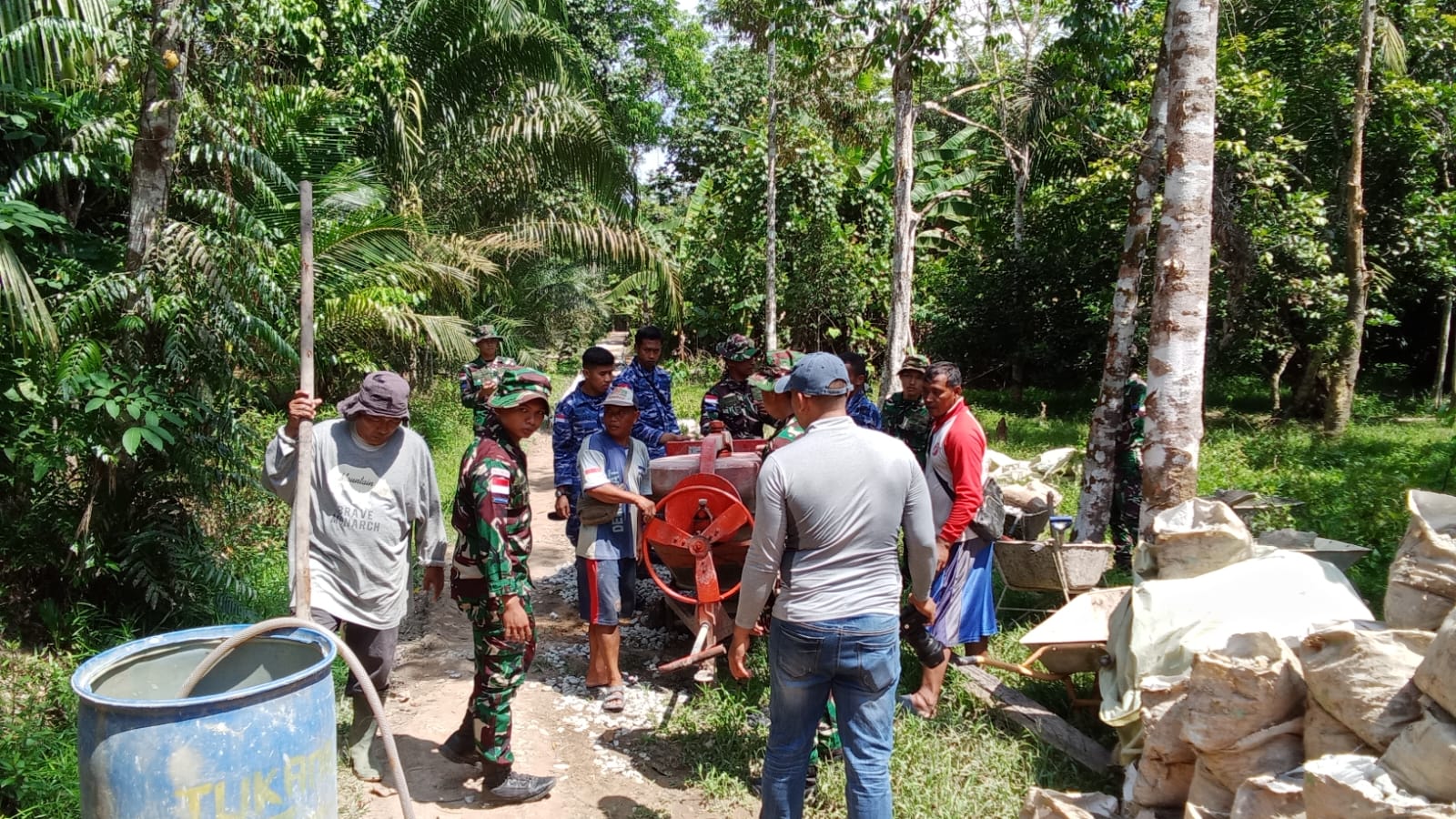 Pemindahan mesin molen dilakukan agar proses pengecoran di titik sasaran dapat berjalan lebih cepat dan efisien. Kegiatan ini menunjukkan semangat kebersamaan antar prajurit lintas matra serta partisipasi aktif masyarakat dalam mendukung suksesnya program TMMD.
