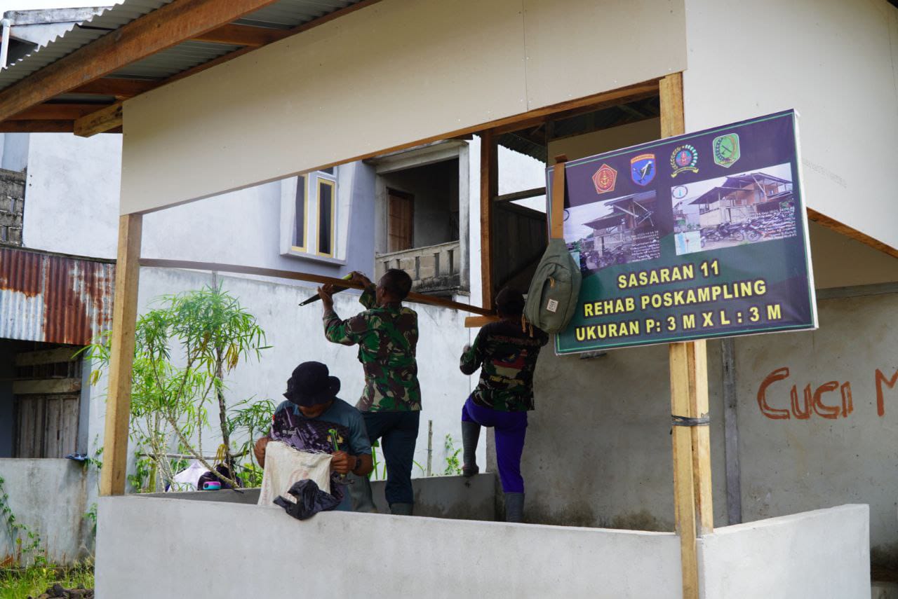 Sambas,TransTV45.com. : Satgas TNI Manunggal Membangun Desa (TMMD) Reguler ke-126 Kodim 1208/Sambas terus melanjutkan pengerjaan sasaran fisik di Desa Ratu Sepudak, Kecamatan Galing. Salah satu pekerjaan yang saat ini tengah dilakukan adalah pemasangan dinding atas Poskamling dengan menggunakan bahan GRC (Glassfiber Reinforced Cement).(Jum’at,31 Oktober 2025)