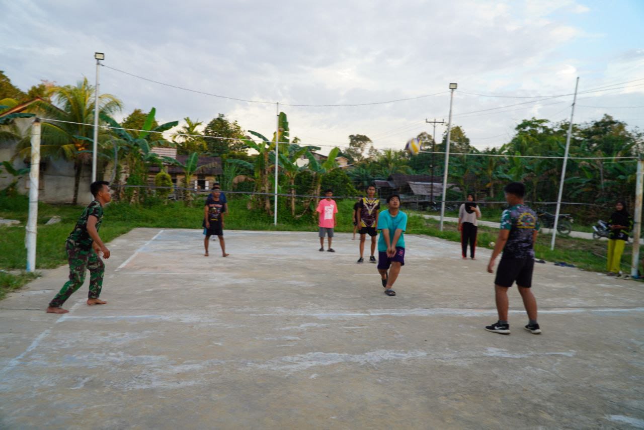 Kegiatan olahraga bersama ini diikuti oleh personel Satgas TMMD, aparat desa, serta masyarakat setempat jenis olahraga dilakukan yaitu voli, yang berlangsung penuh semangat dan kebersamaan.