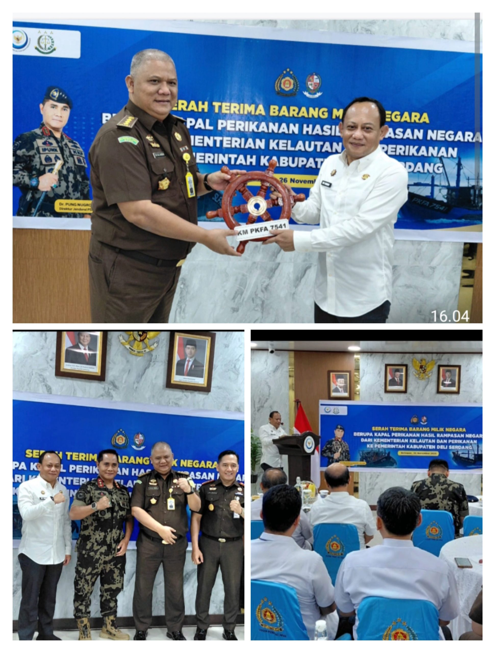 BELAWAN -TransTV45.com|| Pemerintah Kabupaten (Pemkab) Deli Serdang menerima dua unit kapal rampasan negara dari Direktorat Jenderal (Ditjen) Pengawasan Sumber Daya Kelautan Perikanan (PSDKP) Pangkalan Belawan, Rabu (26/11/2025).