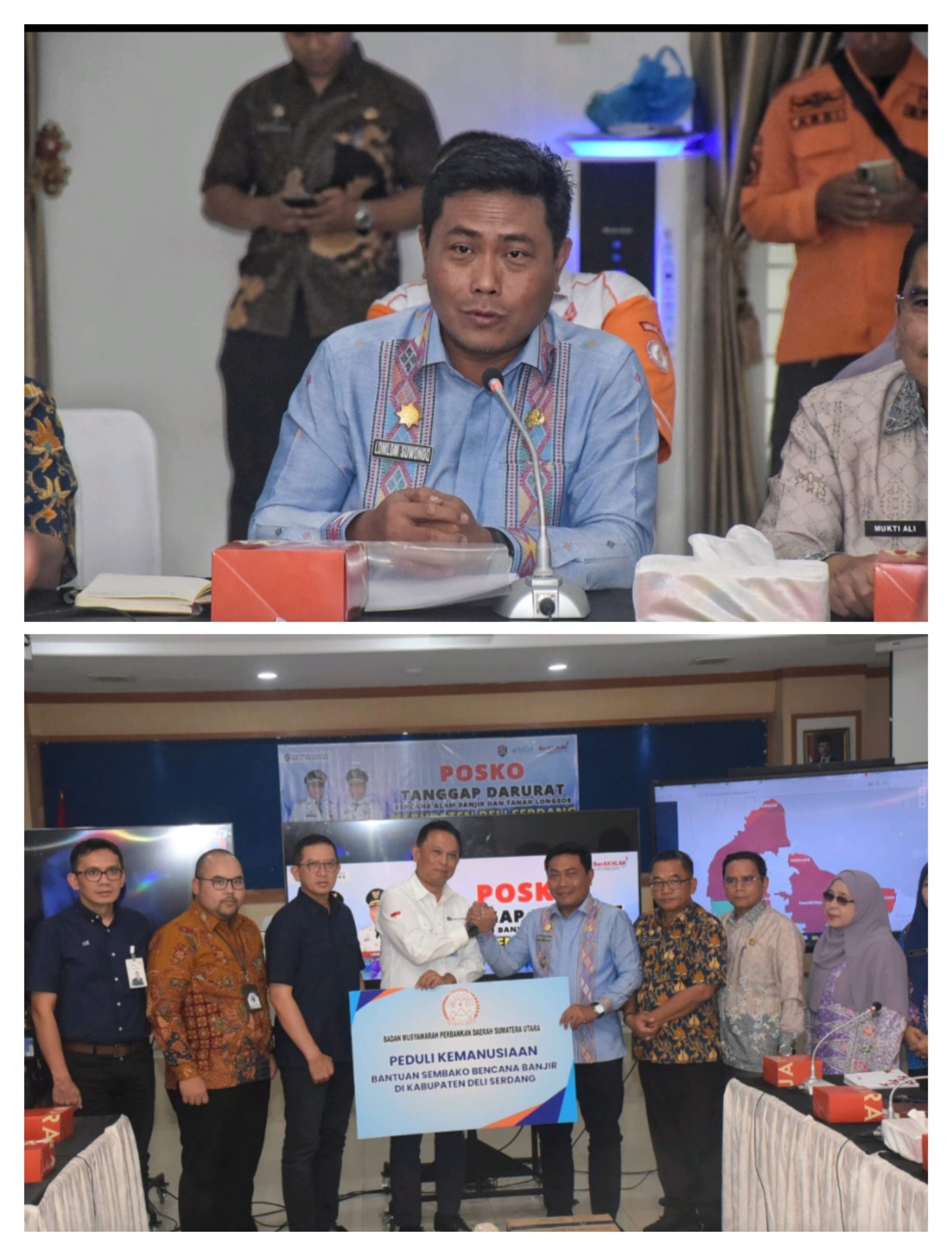 Bantuan diserahkan Ketua BMPD Sumatera Utara (Sumut) yang juga Kepala Perwakilan (KPw) Bank Indonesia Sumut, Rudy Brando Hutabarat kepada Wakil Bupati (Wabup) Deli Serdang, Lom Lom Suwondo SS di Aula Cendana, Lantai I, Kantor Bupati Deli Serdang, Kamis (4/12/2025).
