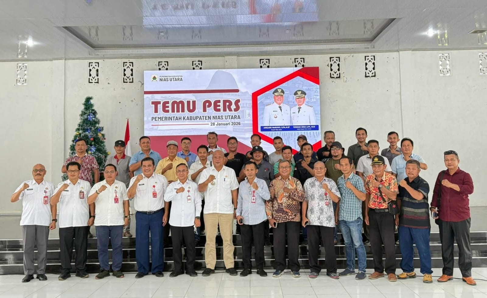 Nias Utara – Transtv45.com||Bupati Nias Utara, Amizaro Waruwu, mengumumkan bahwa 78% pengaduan tentang indikasi penyalahgunaan dana desa di Kabupaten Nias Utara telah dilimpahkan ke Aparat Penegak Hukum (APH). Pengumuman ini disampaikan saat Temu Pers di Aula Tafaeri Kantor Bupati Nias Utara, Rabu (28/1/2026), yang dihadiri oleh Sekretaris Daerah, seluruh Kepala OPD, dan puluhan Wartawan/Media.